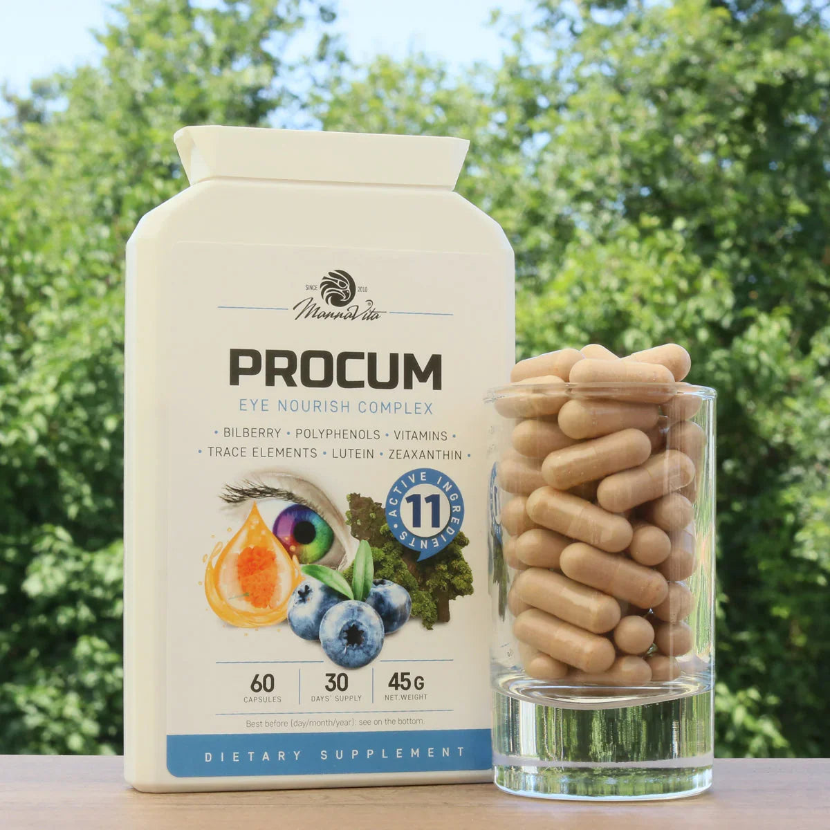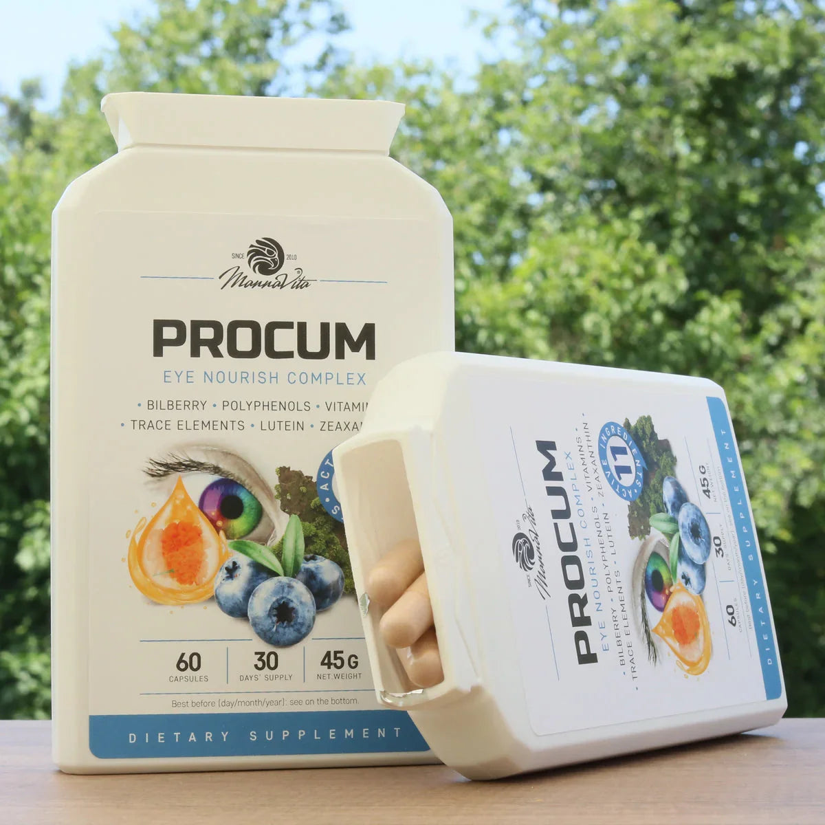S pomocou PrOcum eye complex môžete každý deň prijať vysokú dávku prírodných látok na posilnenie a podporu očí. Kombinuje silu 11 prírodných zložiek, ktoré posilňujú oči a zlepšujú zrak. Jeho dve hlavné účinné látky sú bilberry a pine bark extract.